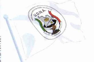 The flag of  União Democrática Nacional de Angola (National Democratic Union of Angola) is white with the UNDA logo in the centre.