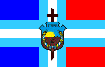 The flag of Etruria is prescribed by Ordinance No. 382 of 22 April 1986, promulgated by Decree No. 19 of 23 April 1996.