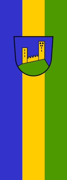 | Description of arms (German): | In Blau auf grünem, schwarz gefasstem Berg eine goldene Burg mit zwei durch Schießscharten bewehrten Burgfrieden, die eine Zinnenmauer verbindet (Form der Burg Liebenfels). [1] [2] |