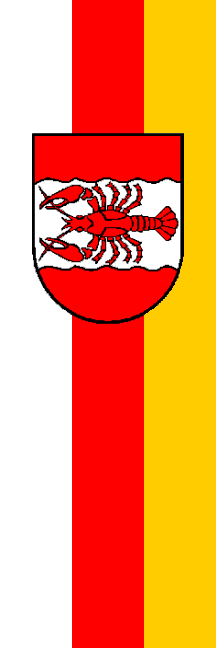 | Description of arms (German): | In Rot ein silberner Wellenbalken, darin ein roter Flußkrebs. |