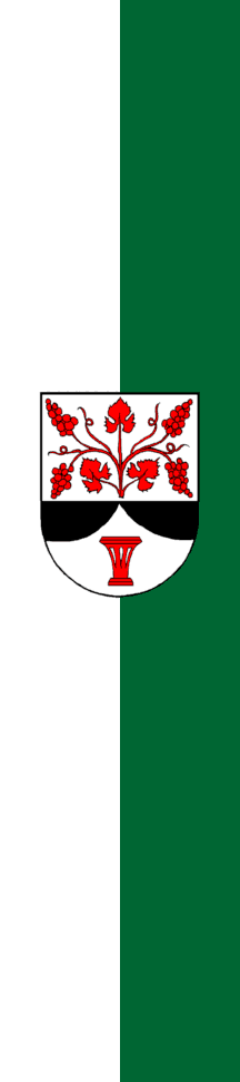 | Description of arms (German): | Im silbernen Schild ein erniedrigter schwarzer Balken, in den aus dem Schildfuß eine eingebogene silberne Spitze aufsteigt, darin ein roter, silbern facettierter Ranftbecher; im oberen Feld eine rote Weinrebe mit vier Trauben und drei Blättern in Form eines Lebensbaumes. |