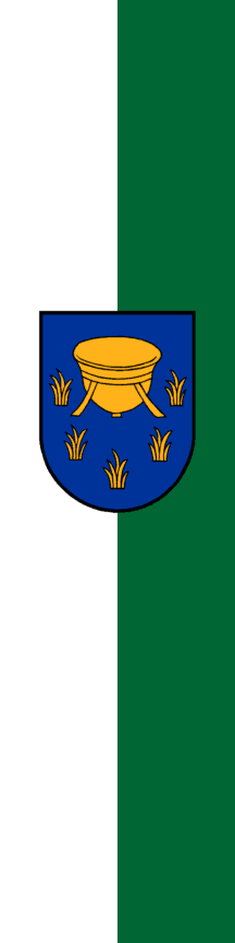 | Description of arms (German): | In Blau erhöht ein goldener Kessel auf goldenem Dreifuß, seitlich und unten von fünf goldenen Grasbüscheln begleitet. |