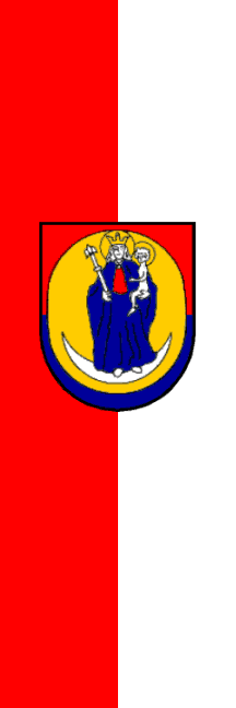| Description of arms (German): | In einem von Rot und Blau geteilten Schild die von einem ovalen goldenen Nimbus umgebene, auf der Mondsichel stehende Gestalt der heiligen Maria, eine Krone auf dem Haupte, in der rechten Hand das Szepter, in der linken das Jesuskind haltend. [1][2] |