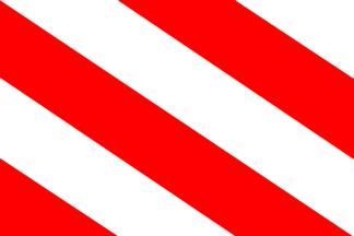 of the French Community and described as Six laizes diagonales descendantes alternativement blanches et rouges.