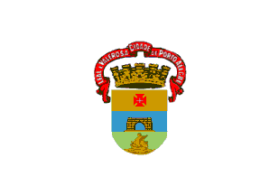 The scroll above the shield and crown reads, Leal e Valoroso Cidade de