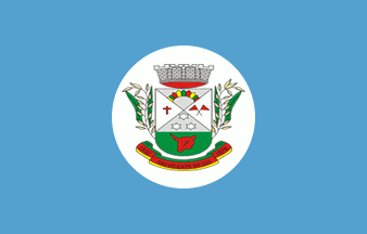 A blue flag municipal coat of arms centred on a white disk.