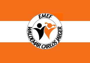 The flag of EMEF Waldemar Carlos Jaeger is horizontally divided