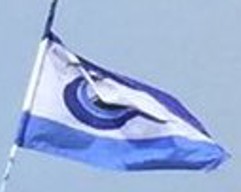 The flag of the Town of Bauline is white with upper darker blue and lower