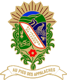 The tribute to our predecessors and their current continuity is symbolized by the sheaf of wheat, the maple leaf and wood, all past and present economic cultures of our municipality.