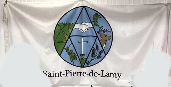 Quebec, is white with the municipal emblem and name Saint-Pierre-de-Lamy below