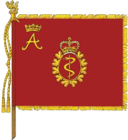The flag is per bend sinister Gules and Vert in the canton the badge of the Canadian Forces Medical Service proper. There is an "A" in the upper-left corner of the flag -- it presumably refers to Princess Anne. The colours of red and green represent blood and health.