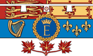Canada. It displays the Royal Arms of Canada, in banner form, as its basis. The