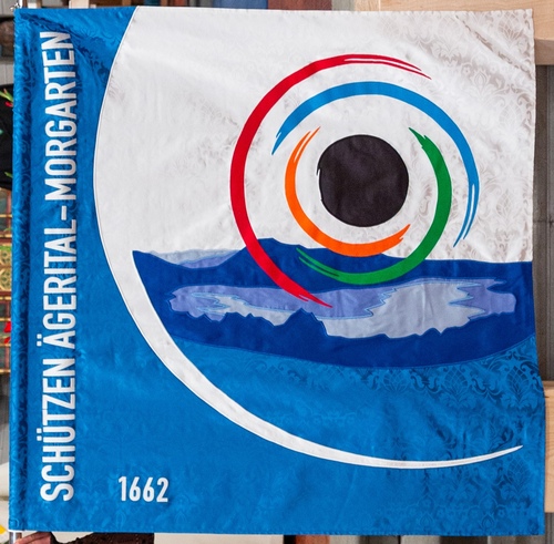 The year 1662 on the new flag (introduced in 2019) refers to the earliest reference of shooting in Oberägeri