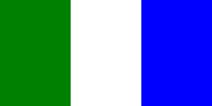 The flag of Repelón is vertical green-white-blue tricolor.