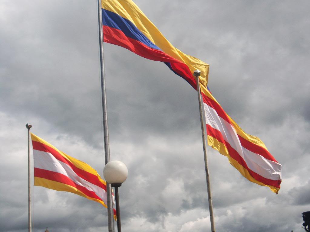 Since I cannot find any match between these two flags (the flags in the picture, and the flag of the Municipality of Tocancipá) I ask if any reader can identify what these unknown flags refer to.