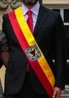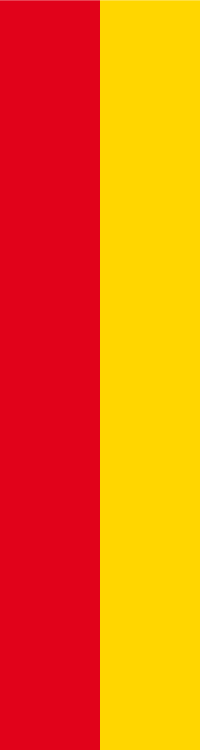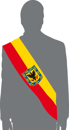 The sash of the mayor is a horizontal bicolor of the flag's colors (yellow and red), with the coat of arms over the center shifted closer to being horizontal on the bands.