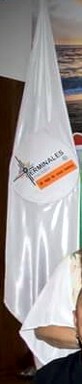 For additional information, please visit the parish website. The flag is a horizontal dark blue background with the logo in the middle.