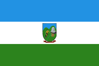 flag is horizontally divided blue-white-green with the borough's coat of arms in