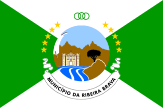 The flag of the Municipality of Ribeira Brava is diagonally divided on both