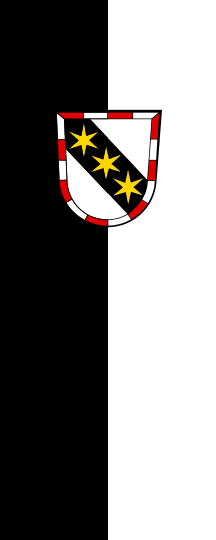 It is a black-white vertical bicolour. The coat of arms is shifted to the top.