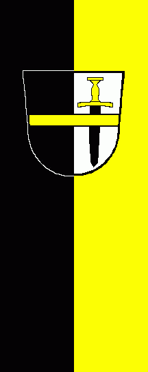 It is a black-yellow vertical bicolour. The coat of arms is shifted to the top.