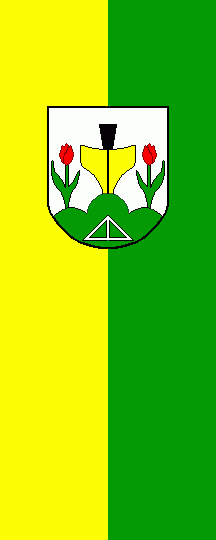 It is a yellow-green vertical bicolour. The coat of arms is shifted towards the top.