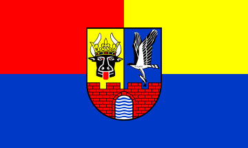 The flag was approved on 7 December 1995 and the arms were approved on 20 March 1995 by Minister of Interior of Mecklenburg-Vorpommern. Both were published in the Municipal Roll of Arms Mecklenburg-Vorpommern as no.81.