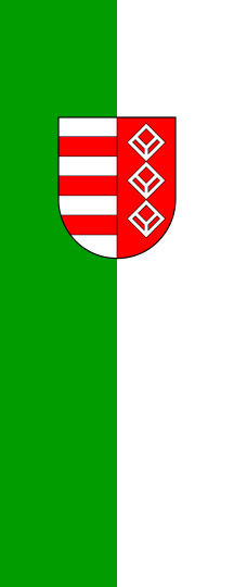 It is a green-white vertical bicolour with coat of arms slightly shifted towards the top.