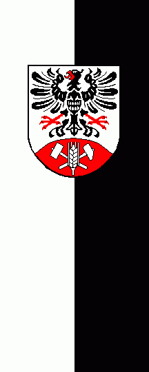 It is a white-black vertical bicolour. The coat of arms is shifted towards the top.