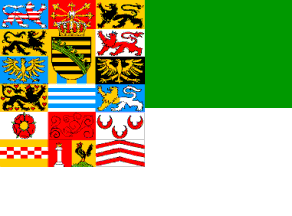 Neubecker 1933 gives also a 'lesser standard' (Kleine Herzogsstandarte) four stripes of green and white with in the canton the ancient arms of the duchie of (Upper) Saxony, also used by the other branches of the house of Wettin in Thuringia, blazon: Barry of ten Sable and Or, a crancelin ('Rautenkranz') bendwise Vert.