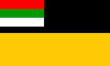 A flag striped ten times of yellow and black, as a banner of arms of the most important part of the arms. Proposed by the Ministry of the Interior as a draft to the parliament, but rejected.