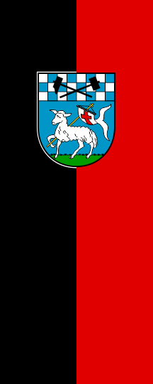 It is a black-red vertical bicolour. The coat of arms is shifted towards the top.