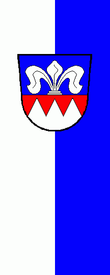 It is a white-blue vertical bicolour. The coat of arms is shifted to the top.
