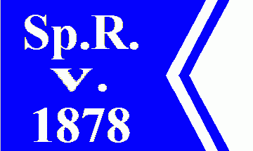 The flag was divided per chevron, pointing to the hoist into black (see left image above) or blue (see right image above) and white. On the black(blue) is a white inscription "Sp.R." over "V." over "1878". On the white chevron is a black/blue one also pointing to the hoist. Spindlersfelder Ruderverein 1878 was the oldest predecessor of nowadays club.