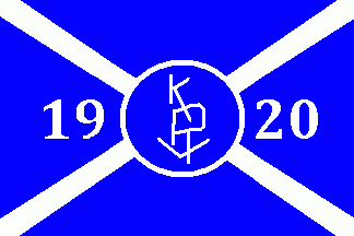 The blue flag was parted by white saltire. On centre in a white annulet was a white inscription (handwriting) in bend and intertwined "KRV".
