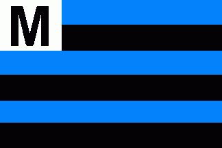 It was a 9-stripes flag horizontally divided by alternating blue and black stripes. On the white canton was a black initial "M".