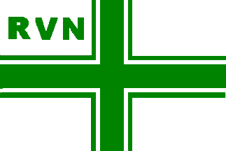 It is a white flag with a cotised green centred cross. In the canton are green capital letters "RVN".