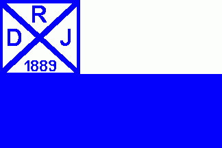 "R"(top), "D"(hoist), "J"(for "I", fly) and "1889"(bottom).