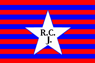 It was a 13-stripes flag horizontally divided by alternating red and blue stripes. On centre was a white star with blue inscription "R.C."(1st line) "J"(2nd line).