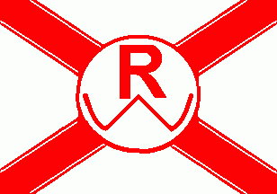 The flag was white parted by a red saltire. On centre on a white disc fimbriated red was a red inscription "RW".
