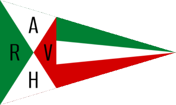 The current flag (see left image above) is blue with two horizontal red stripes and a white 6-point star in the centre of the flag. The canton is white with red capital letters "RVL" over a red "1911". The first (see right image above) flag was a square flag parted by a saltire, blue in upper fly and lower hoist, red in lower fly and upper hoist and white in centre, flanked by golden-yellow initials "R" (hoist), "V" (top) and "L" (fly)