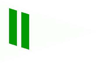 It is a white triangular pennant with two green vertical lines (or rectangles) shifted to hoist.