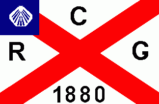 It was a white flag parted by a red saltire with red inscriptions "M."(top), "R."(hoist), "C."(fly) and "F."(bottom).