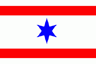 The flag was white with a centred blue 6-point star between two red horizontal lines.