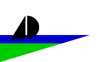The white pennant was parted by an off-centred black cross, in the canton was a green caption "DC", with a little bit of phantasy it can be also interpretes as a sailing boat with swelled sail.