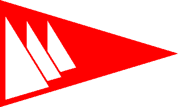 Blue pennant fimbriated white, three decreasing and overlapping sails white-red-white.