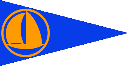 The pennant is blue. At hoist is a stylised orange sailing ship in an orange circle.