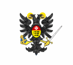 Colonel's Flag: white, above black double eagle with crown, sword and globus cruciger as usual, the sword near the pole on both sides, coat of arms on the breast in two parts: above red with white cross, underneath yellow with 3 black leopards.