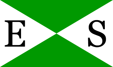Source shows a flag divided saltirewise green over white with black serifed letters on the white triangles, here the initials "E" and "S" instead. I presume these letters are the initials of Ernst Sieg.