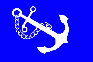Only the colours were inverted from blue charges on white to white charges on blue and the inscription "ØK" in lower fly was removed.